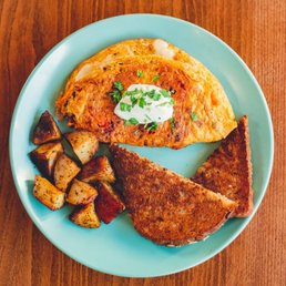 The ambience and service was great. After a 4 hour plane ride finding this spot for breakfast was a god send. The food portions were great. And what better way to start the day off but with a flight of Mimosas. Definitely would come back here. That waffle sandwich was banging, can't go wrong getting it.